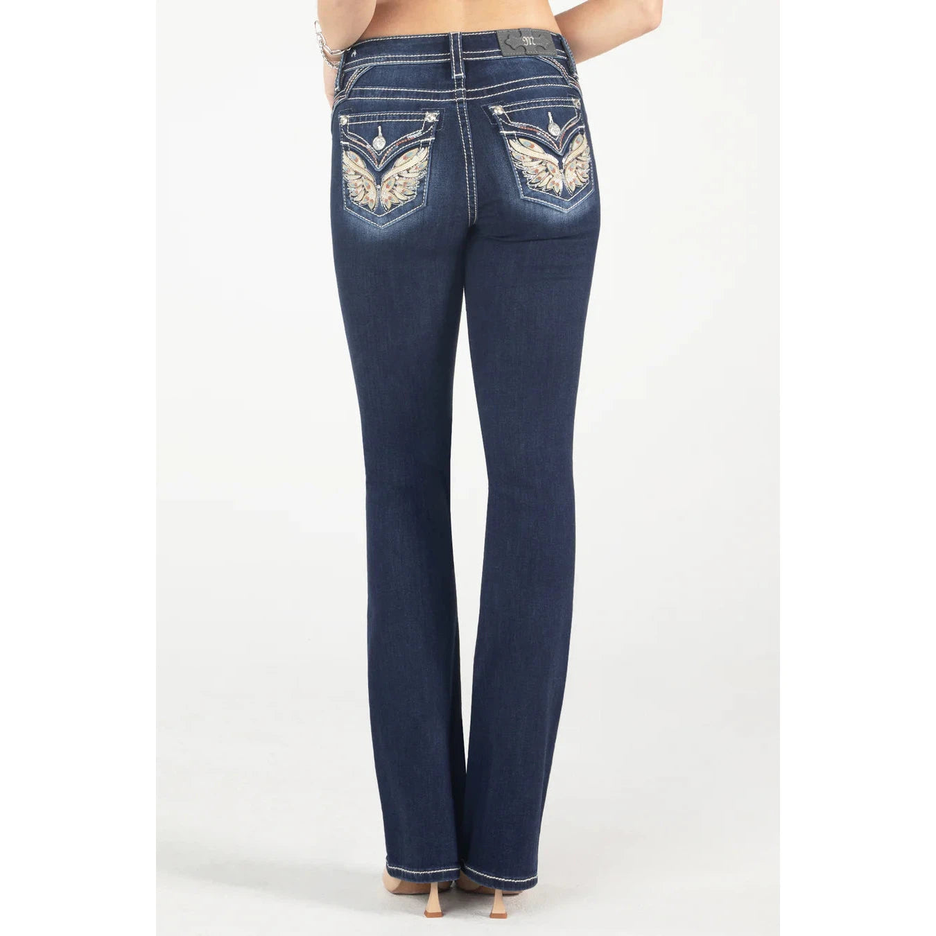 Miss Me Women's Berry & Gold Mid Rise Bootcut Jeans - Dark Wash