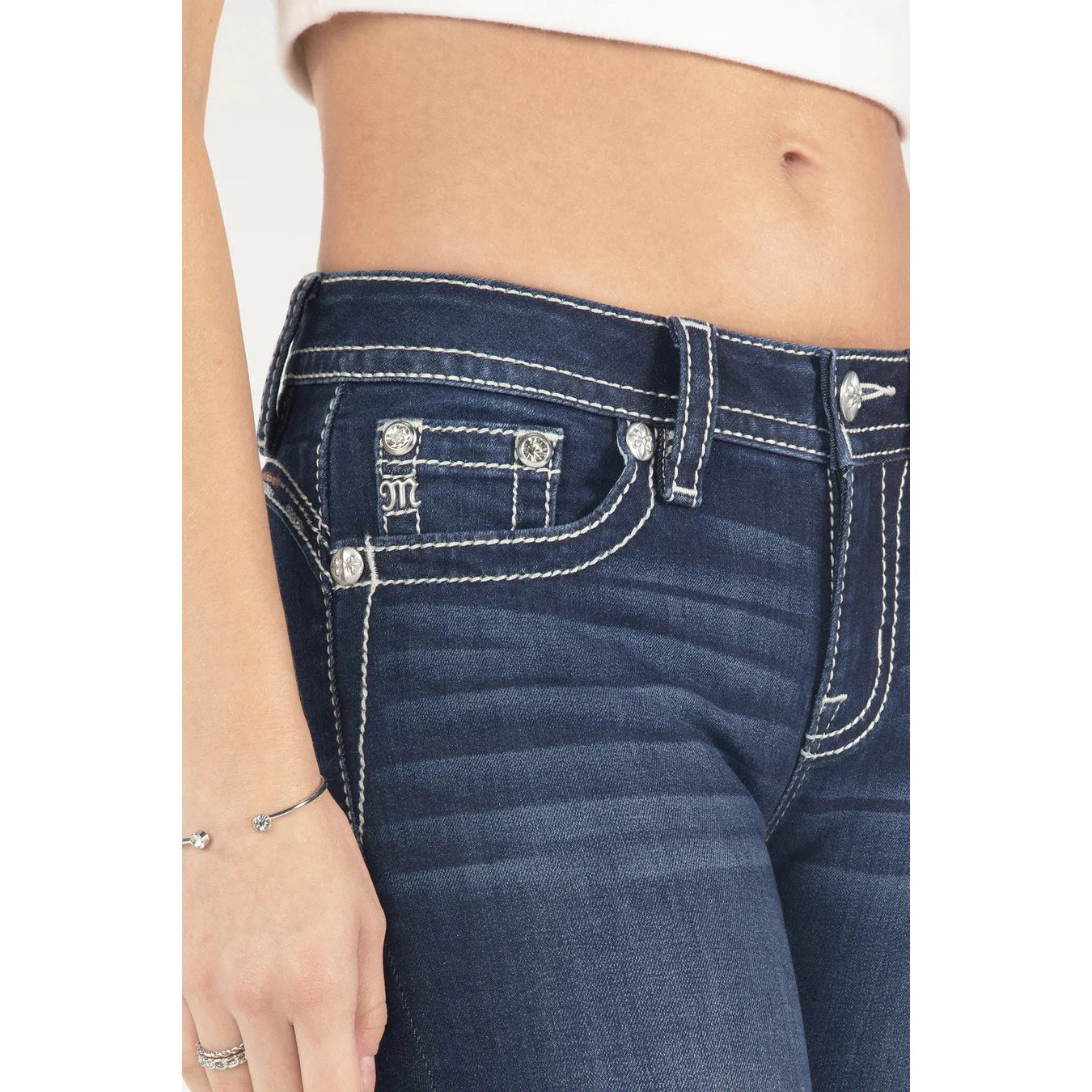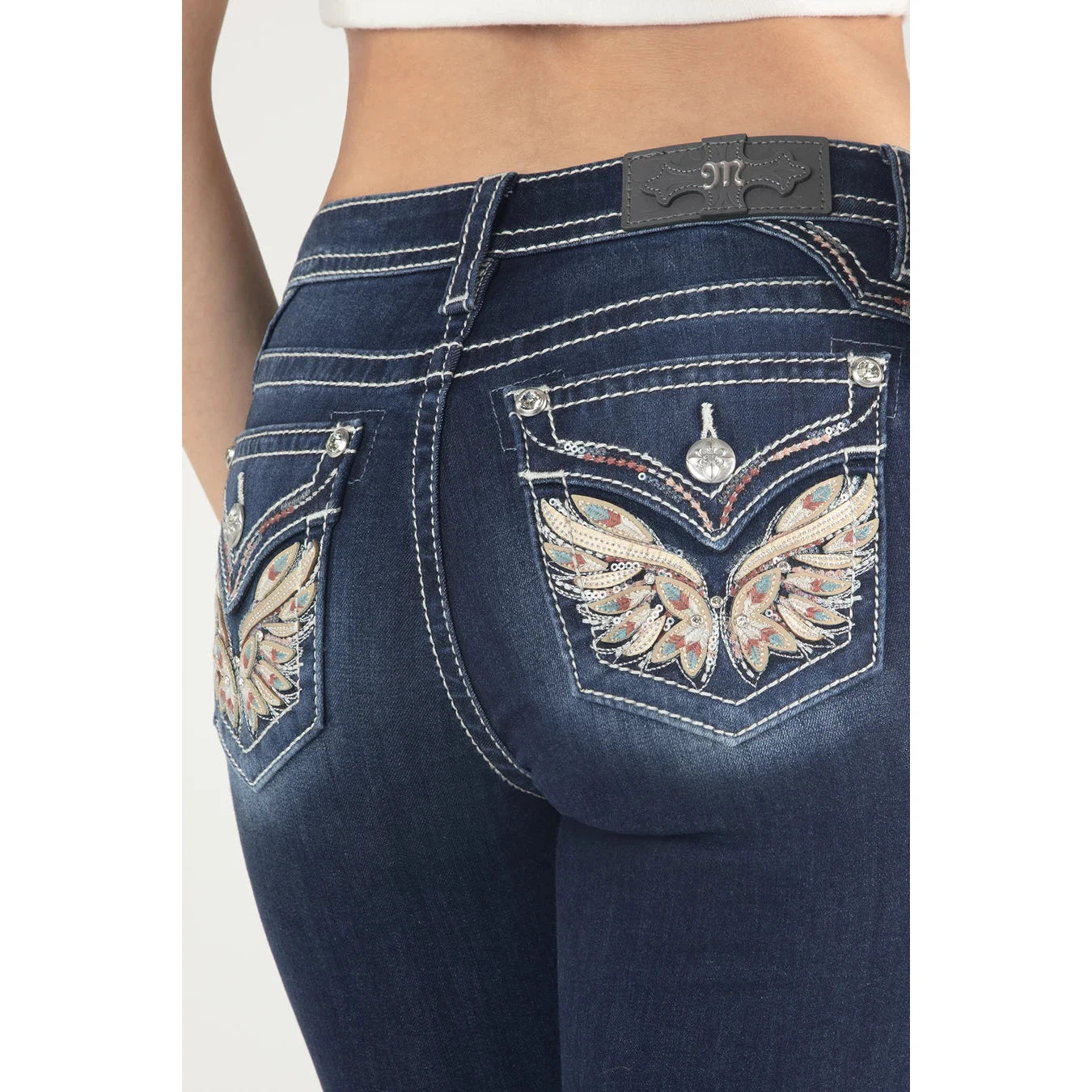 - Faux pocket flap details on back pockets