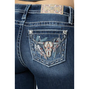 Miss Me Women's Mauve Longhorn Mid Rise Bootcut Jeans - Dark Wash