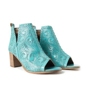 - You'll love these! Romance meets Western flair in these hand-tooled leather peep-toe heels