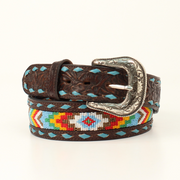 Nocona Women's Belt - Buck Lacing Beaded Pattern Brown