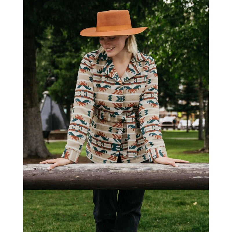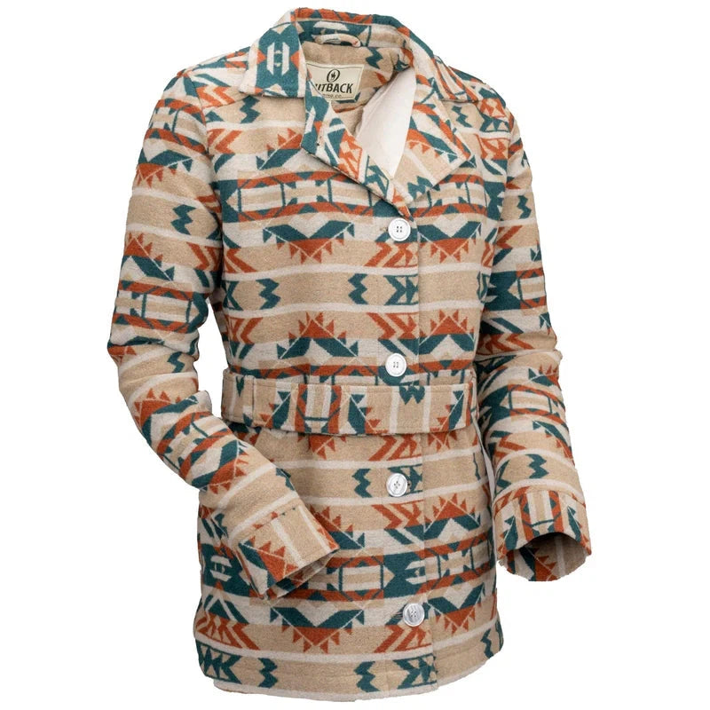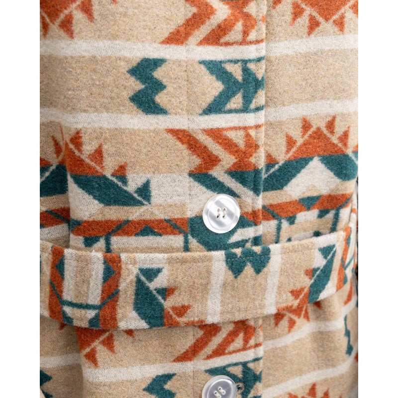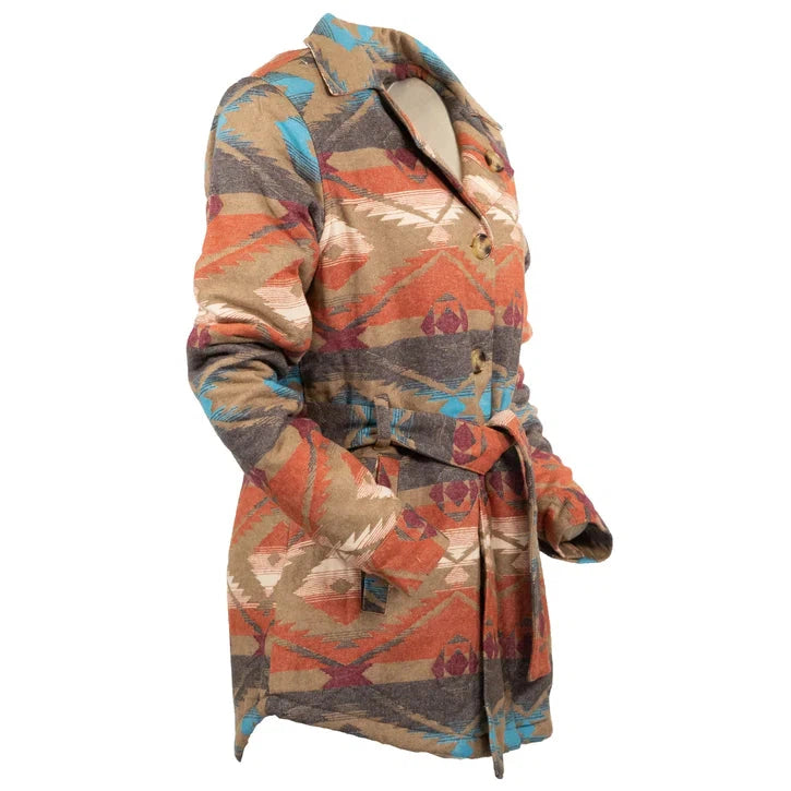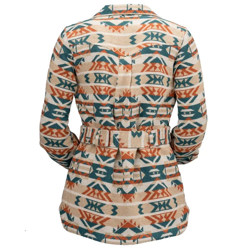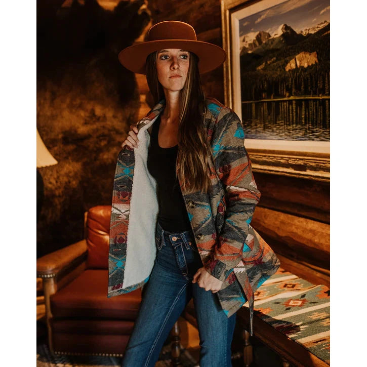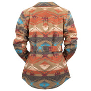 - Our Valarie Jacket is as beautiful as a fall sunset with its bold rust, tan, brown, and turquoise Aztec pattern