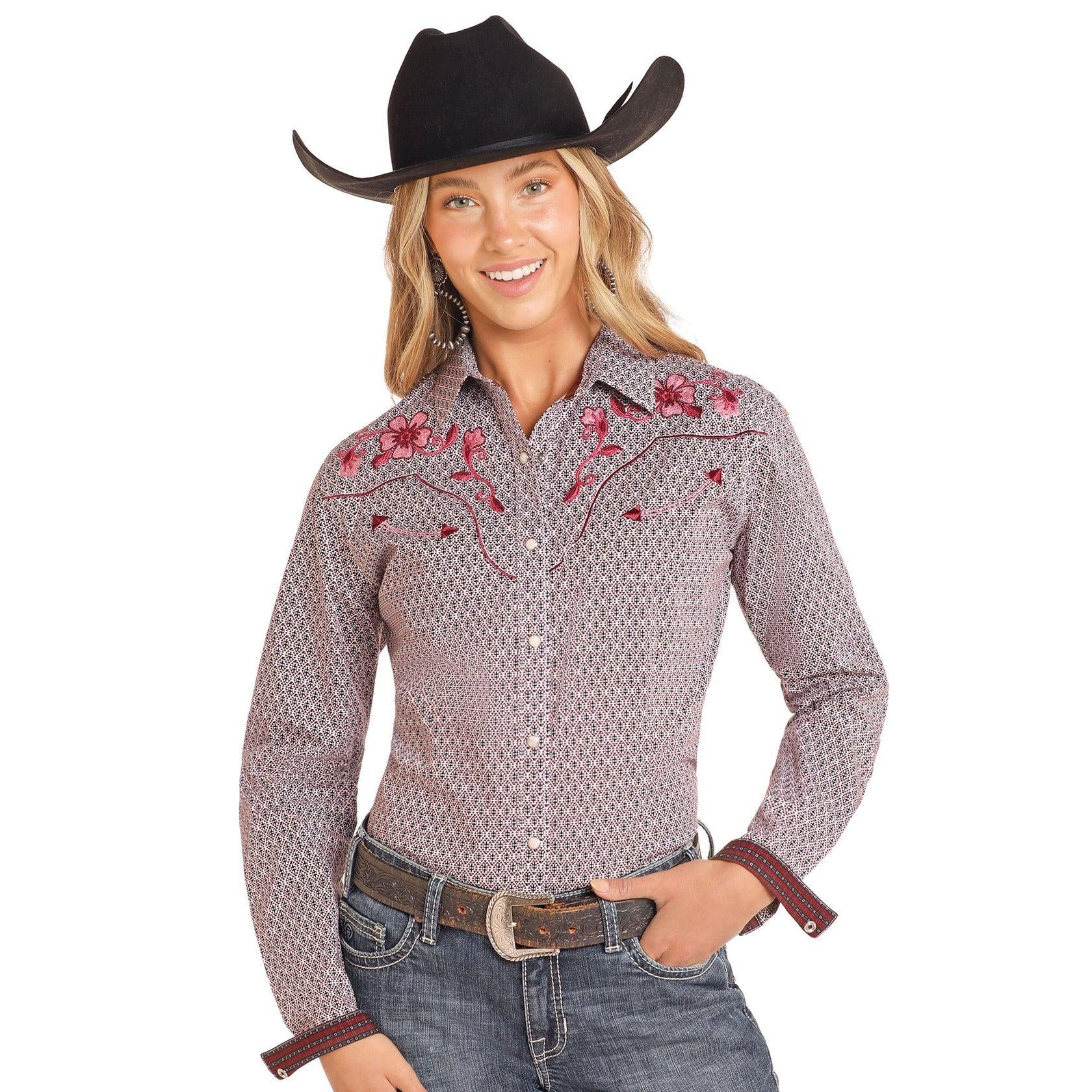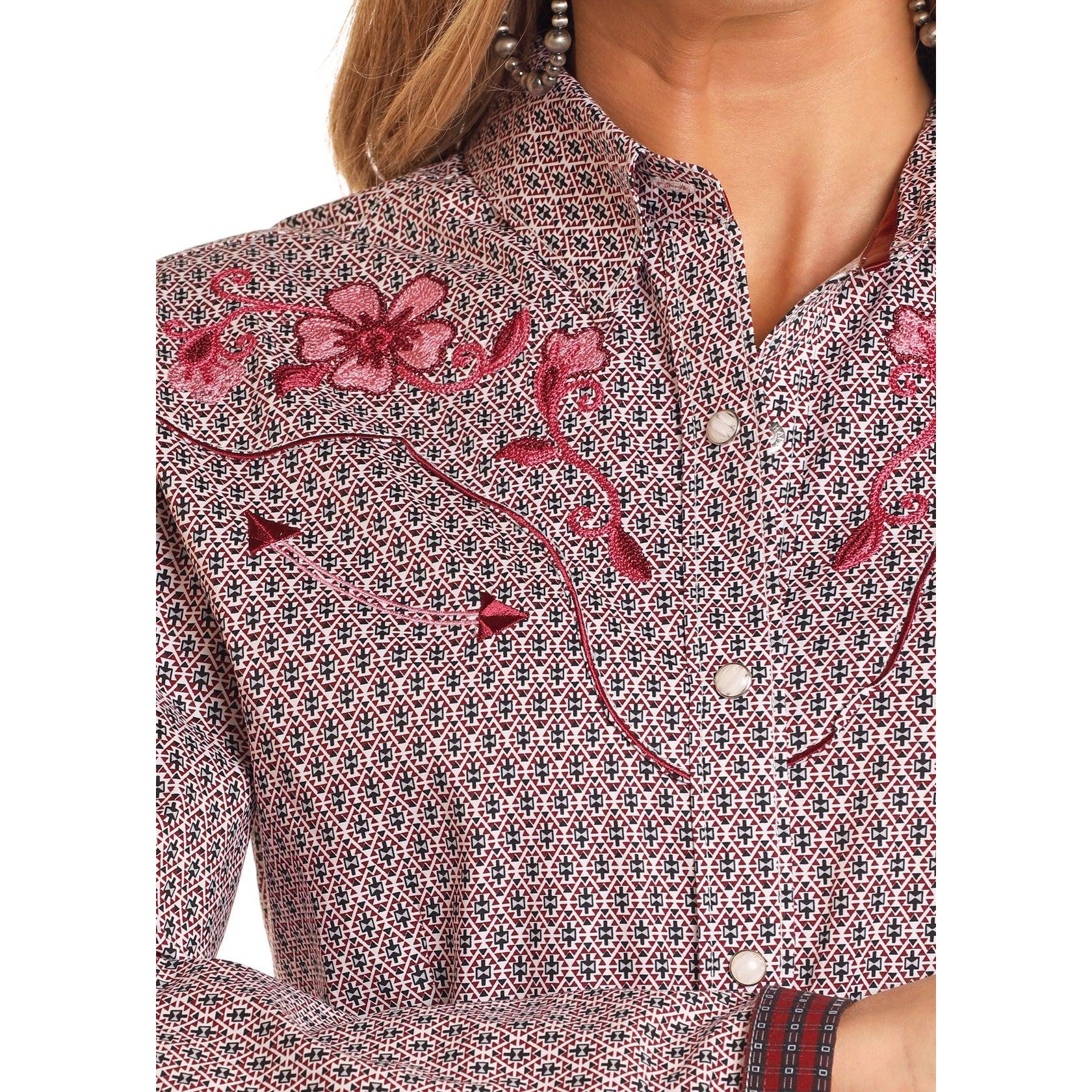 Panhandle Roughstock Women's Paisley Print Shirt - Maroon & White