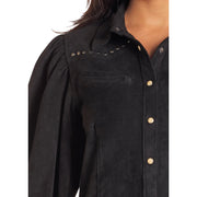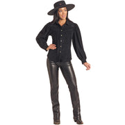 Rock & Roll Women's Long Sleeve Microsuede Snap Shirt - Black