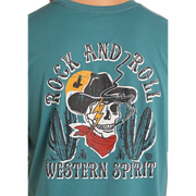 Rock & Roll Unisex Graphic Skull Short Sleeve Tee Shirt-Teal