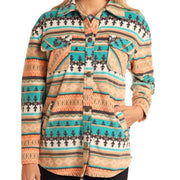 Rock & Roll Women's Aztec Fleece Shacket- Turquoise