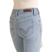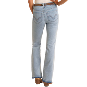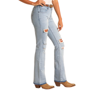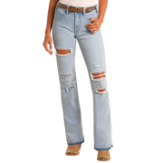 Rock & Roll Women's Distressed High Rise Boot Cut Jeans-Light Wash