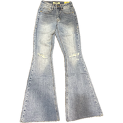 Rock & Roll Women's Distressed High Rise Flare Leg Jeans - Medium Wash