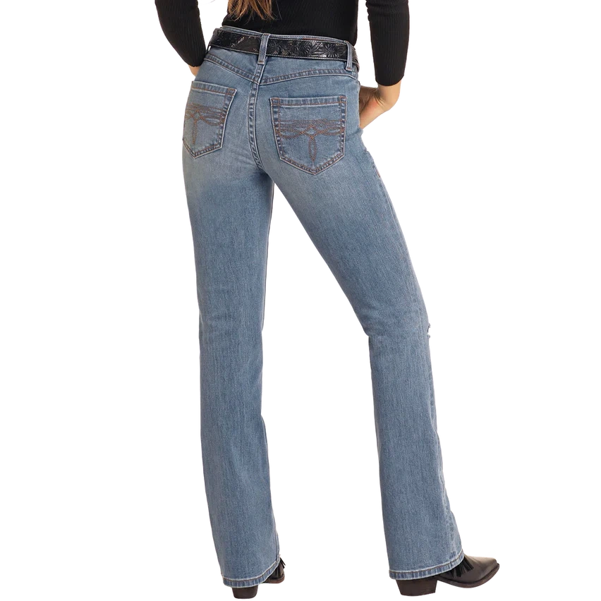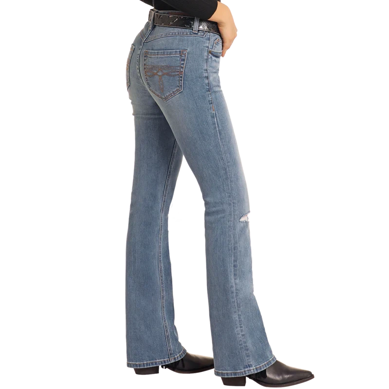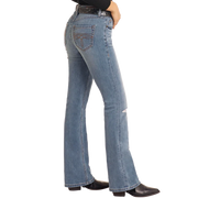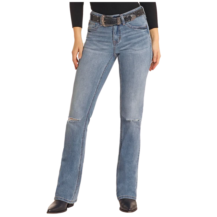 Rock & Roll Women's Distressed Mid Rise Bootcut Jean - Medium Wash