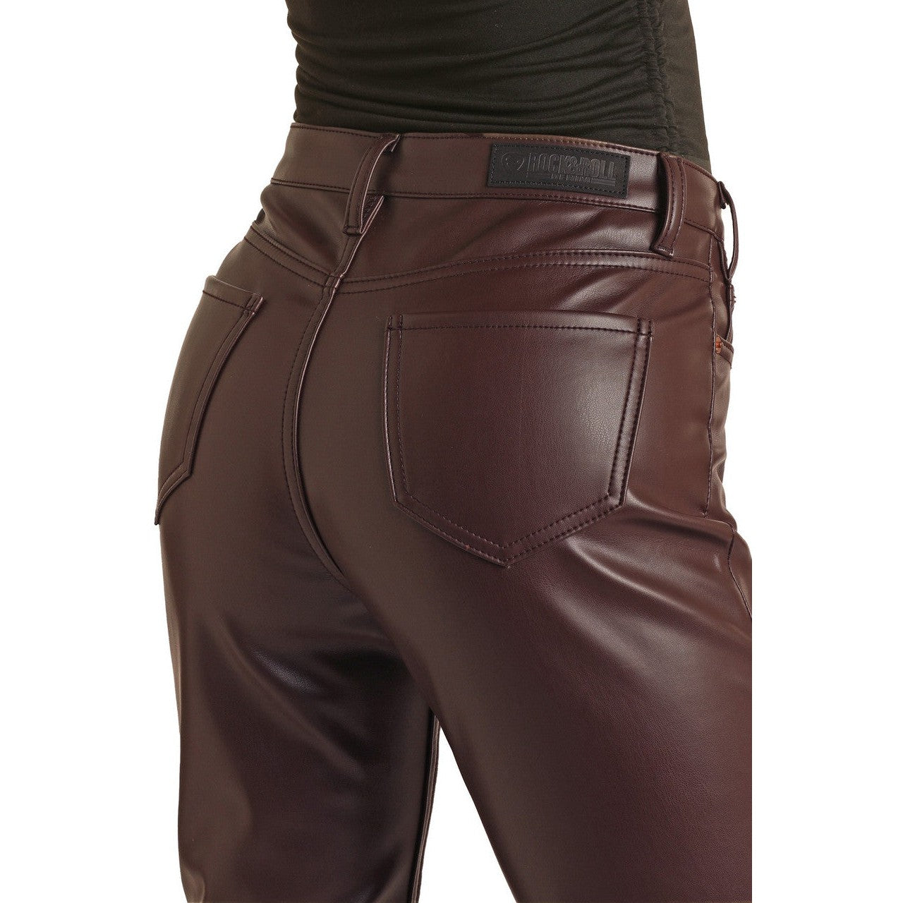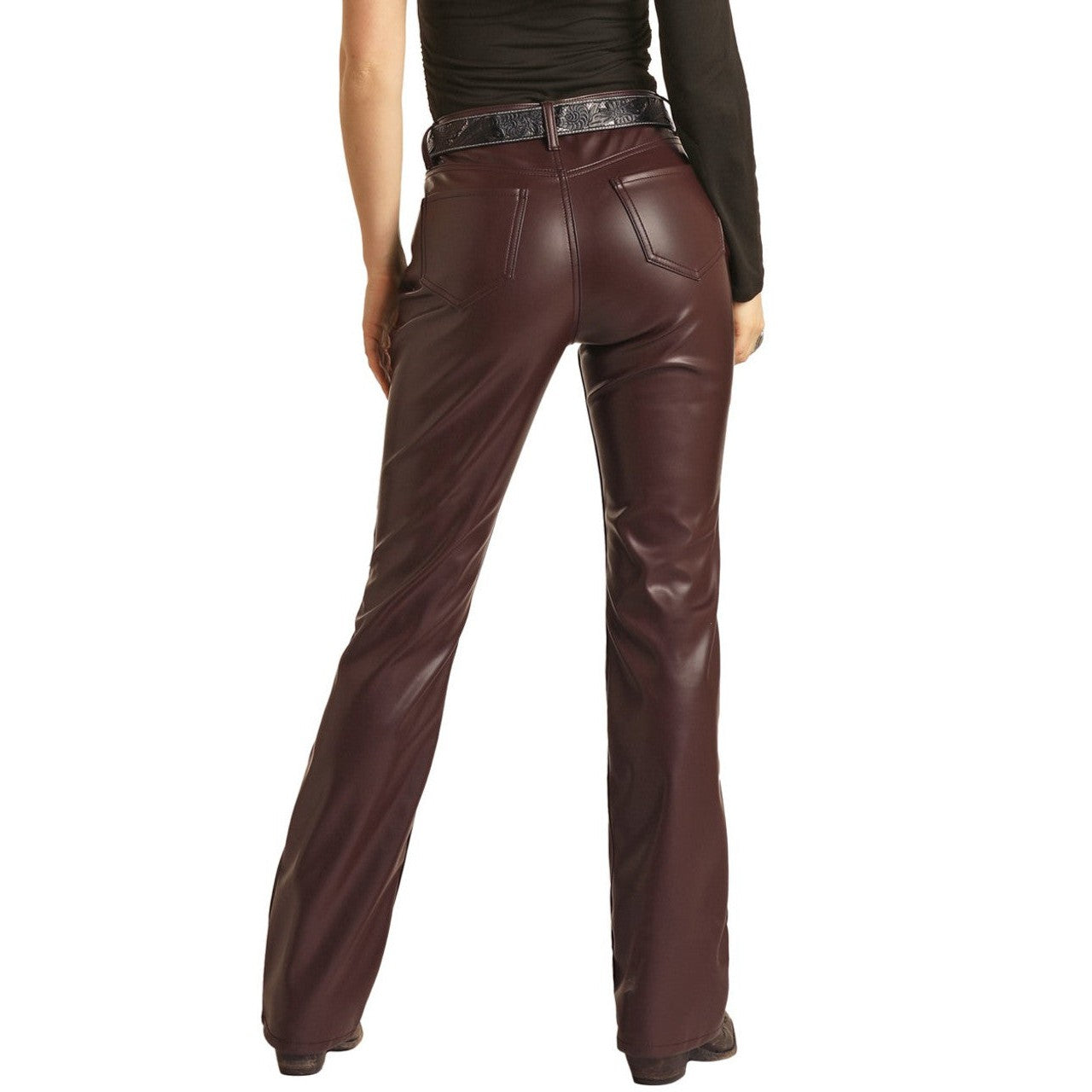Rock & Roll Women's High Rise Stretch Pleather Bootcut Jeans - Wine