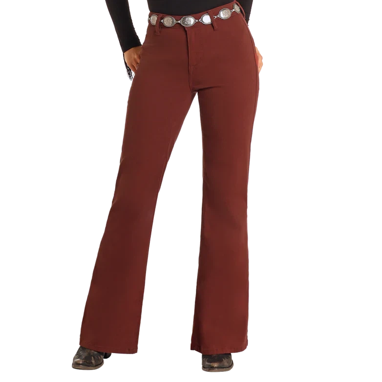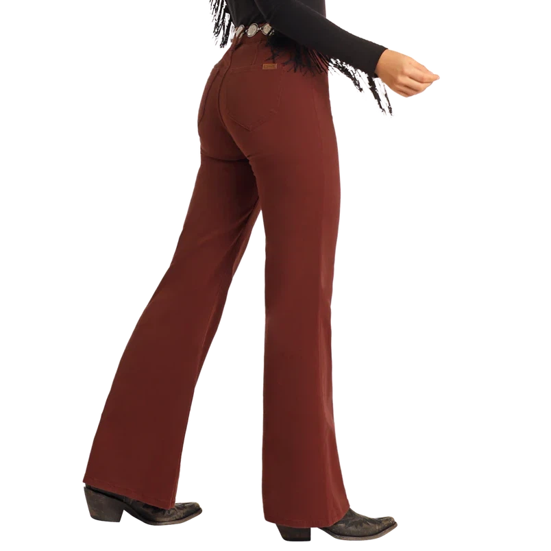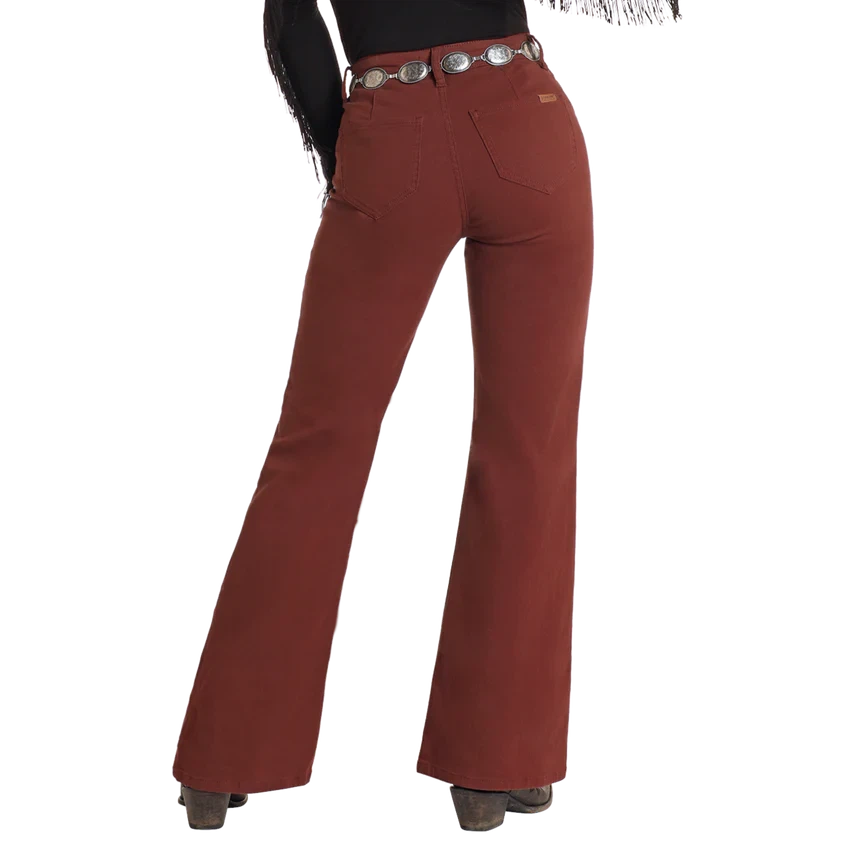 Rock & Roll Women's High Rise Wide Leg Flare Jeans - Brick Red