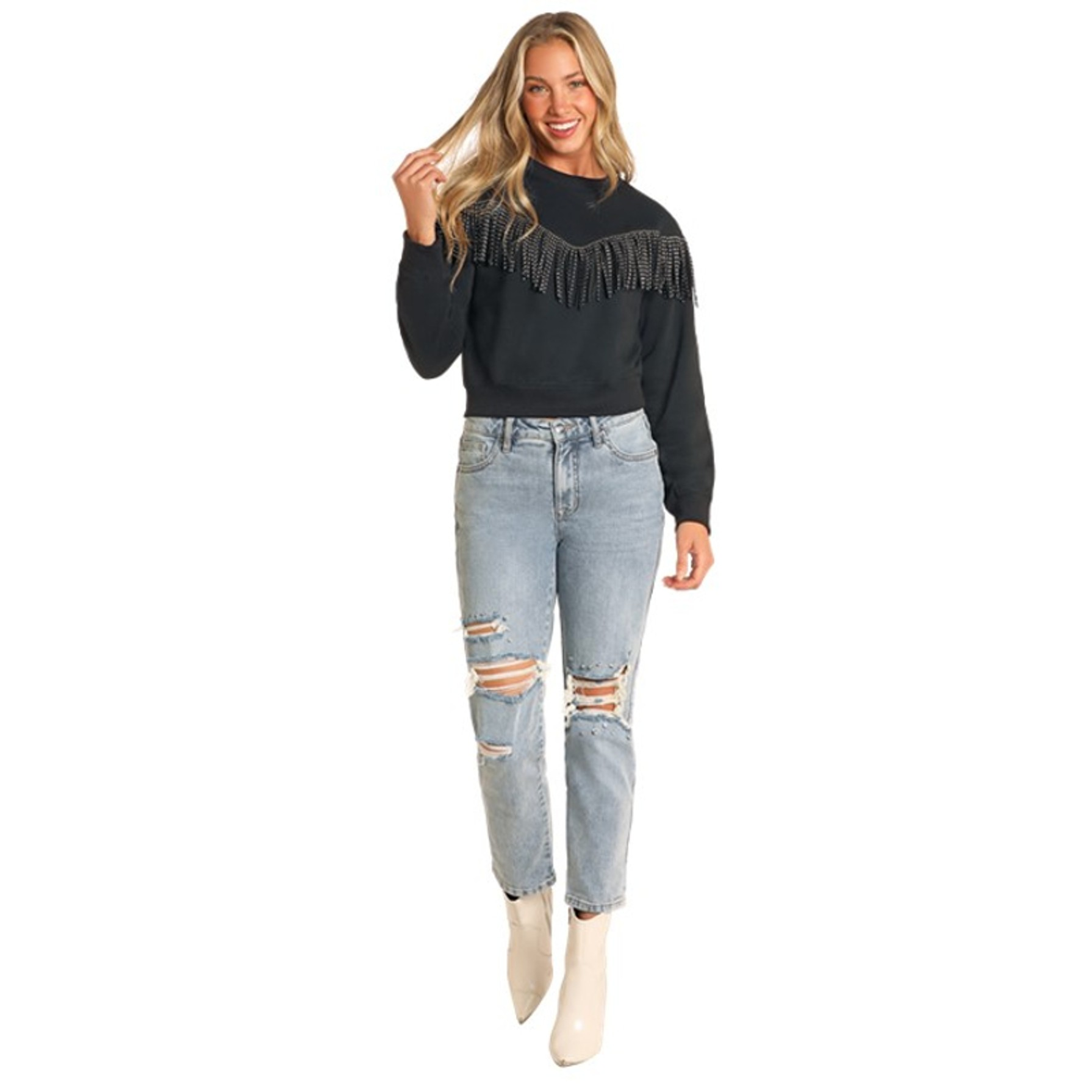 Rock & Roll Women's Long Sleeve Pullover with Studded Fringe - Assorted Colours