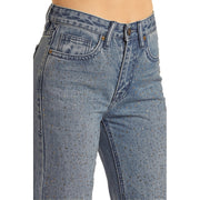 Rock & Roll Women's High Rise Rhinestone Straight Cropped Pants - Medium Wash