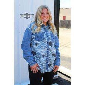 - Your new favorite button-up, with its steer skull & buffalo aztec print and denim accents