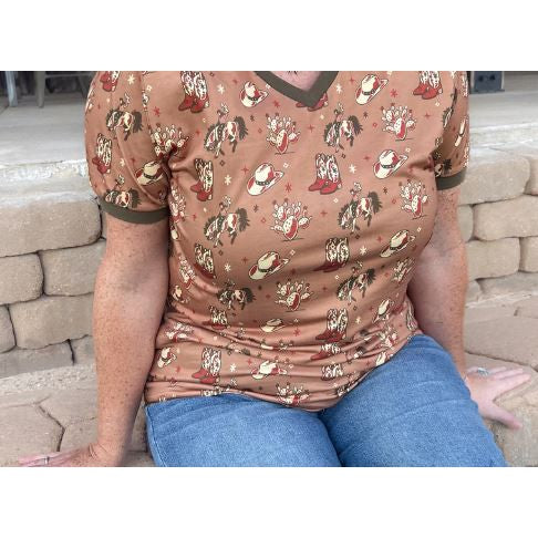 Rowdy Crowd Women's Short Sleeve Cowboy Killer Tee Shirt- Brown