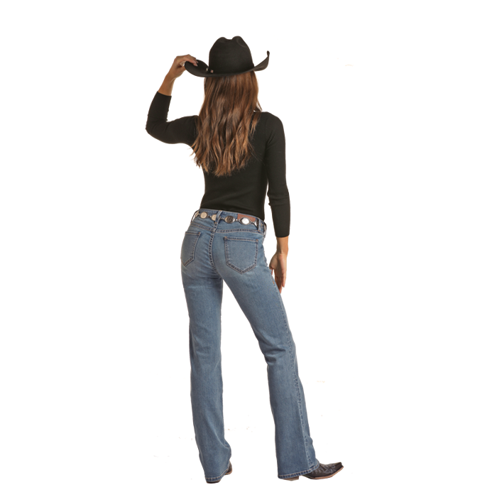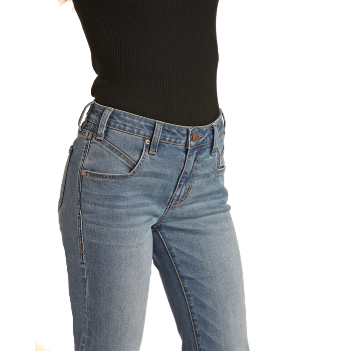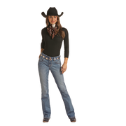 Rock & Roll Women's Front Pocket Detail Mid Rise Bootcut Jean