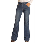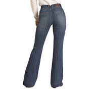 Rock & Roll Women's High Rise Extra Stretch Jacquard Stripe Trouser Jeans - Dark Wash