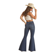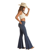 Rock & Roll Women's Dart Detail Button Bell Bottom Jeans - Medium Wash