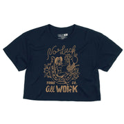 - This crop tee is made from 100% cotton, and features a graphic on the front of the top that says "No Luck All Work," making it perfect for those who work hard and don't believe in luck.