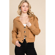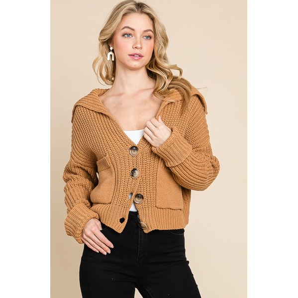 - Knit long sleeve button down thick sweater cardigan with pockets
