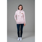 A cozy French terry pullover featuring a high button neck, adjustable drawstrings, and side pockets. Complete with vegan leather details for a stylish finish.