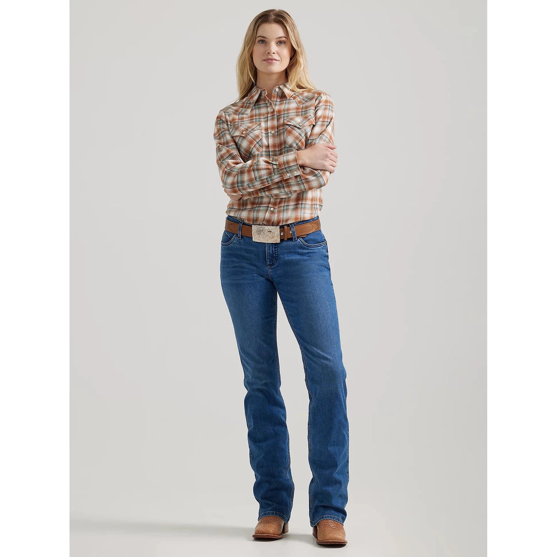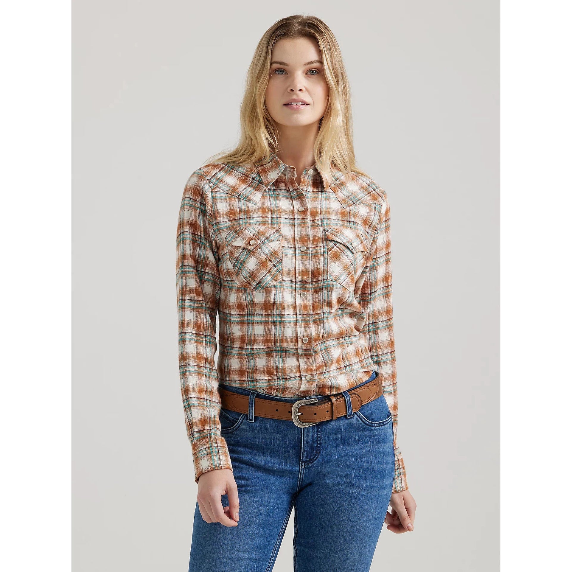 Wrangler HO24 West Women's Essential Plaid Long Sleeve Shirt- White