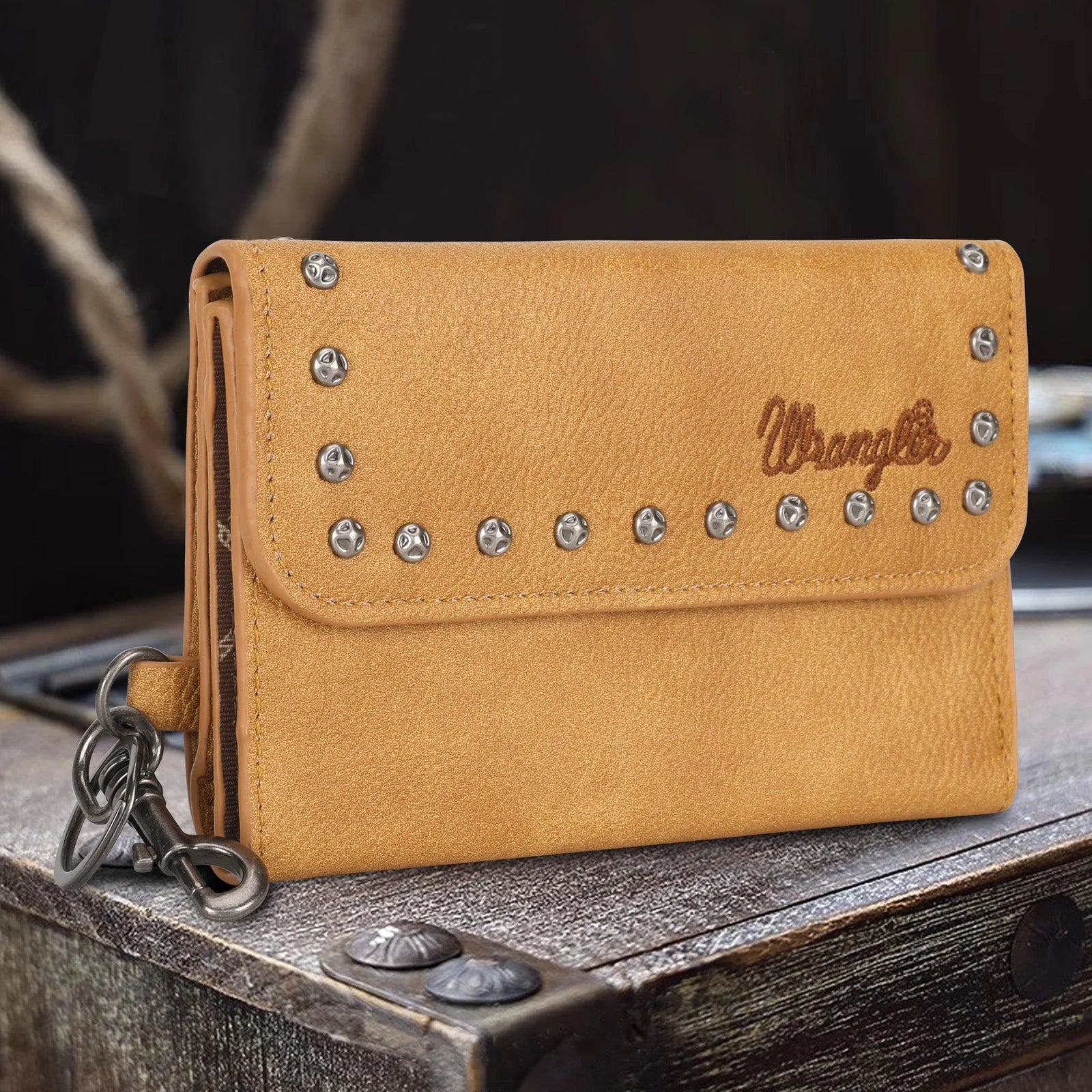 Wrangler Women's Studded Accents Tri-Fold Keychain Wallet - Light Brown