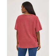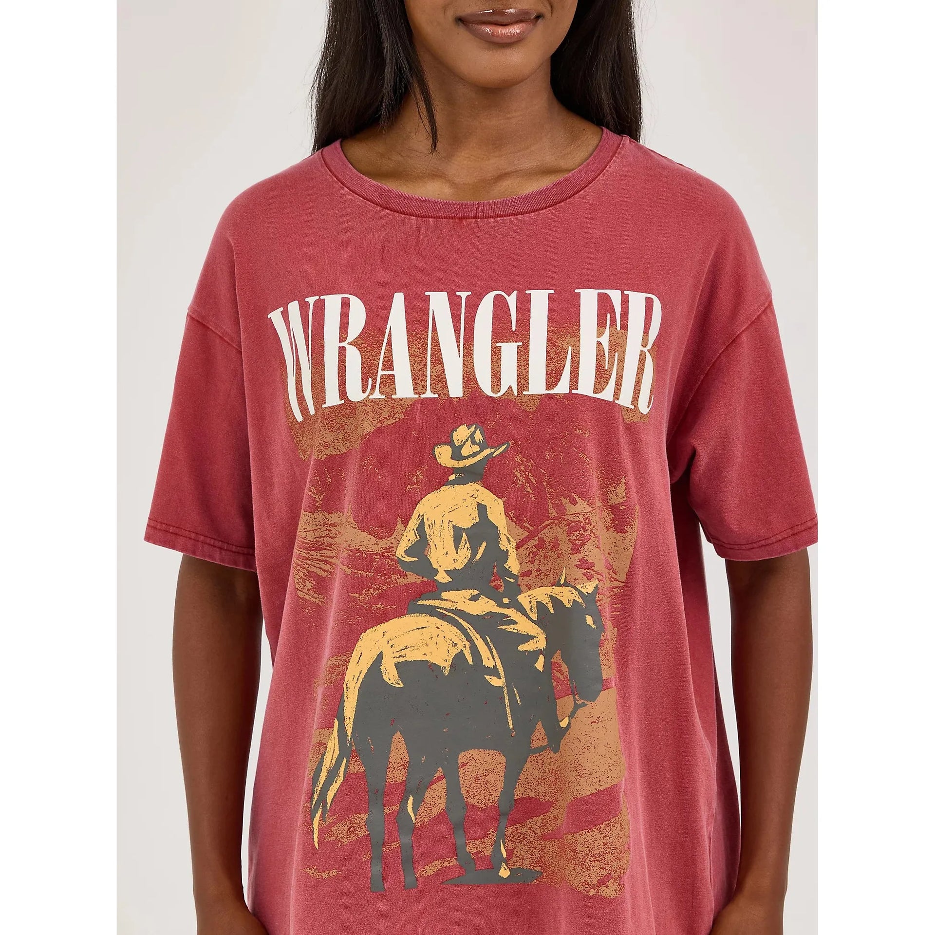 Wrangler Women's Acid Wash Graphic Oversized Short Sleeve Tee Shirt- Chili Oil