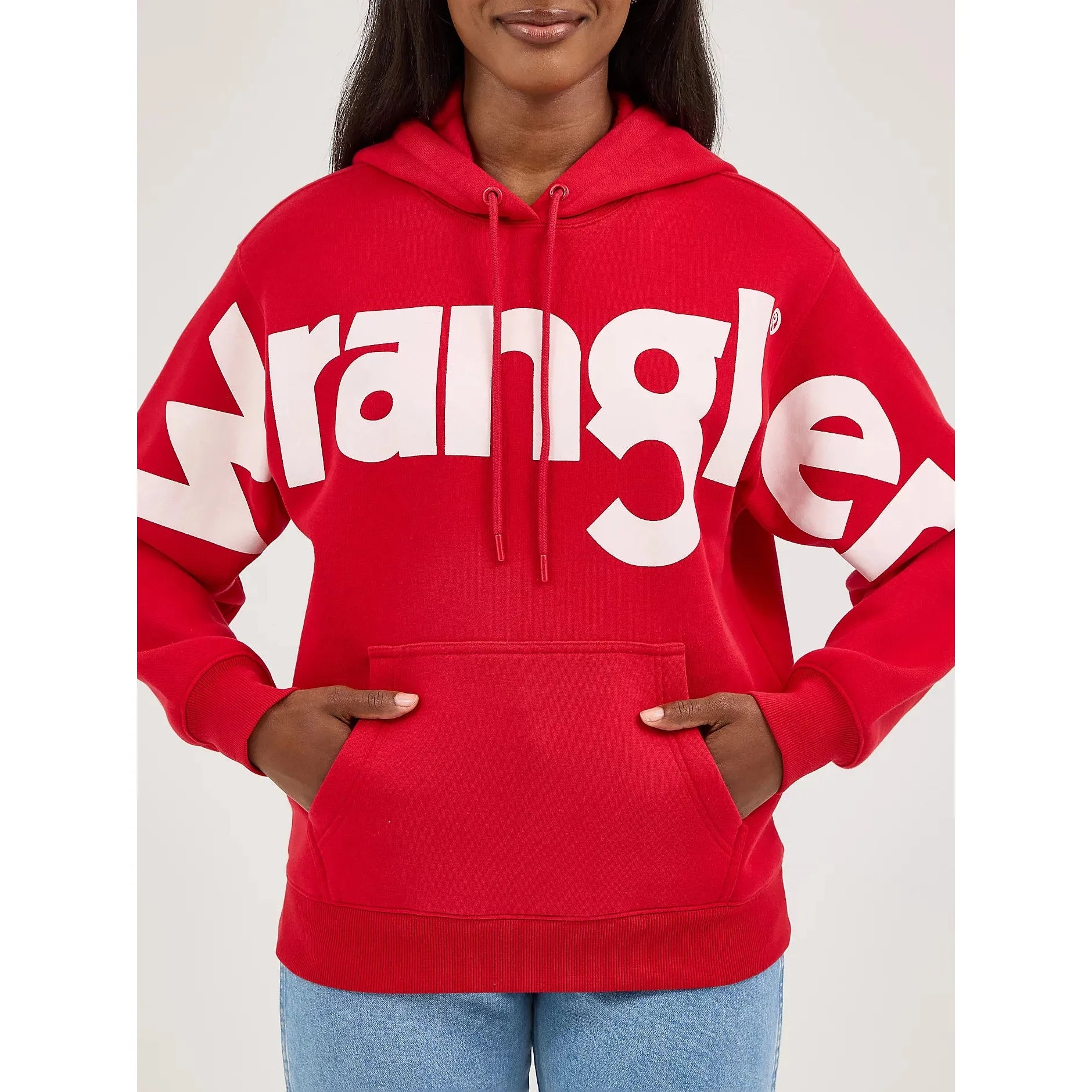 Wrangler Women's Bold Logo Long Sleeve Hoodie- Berry Red