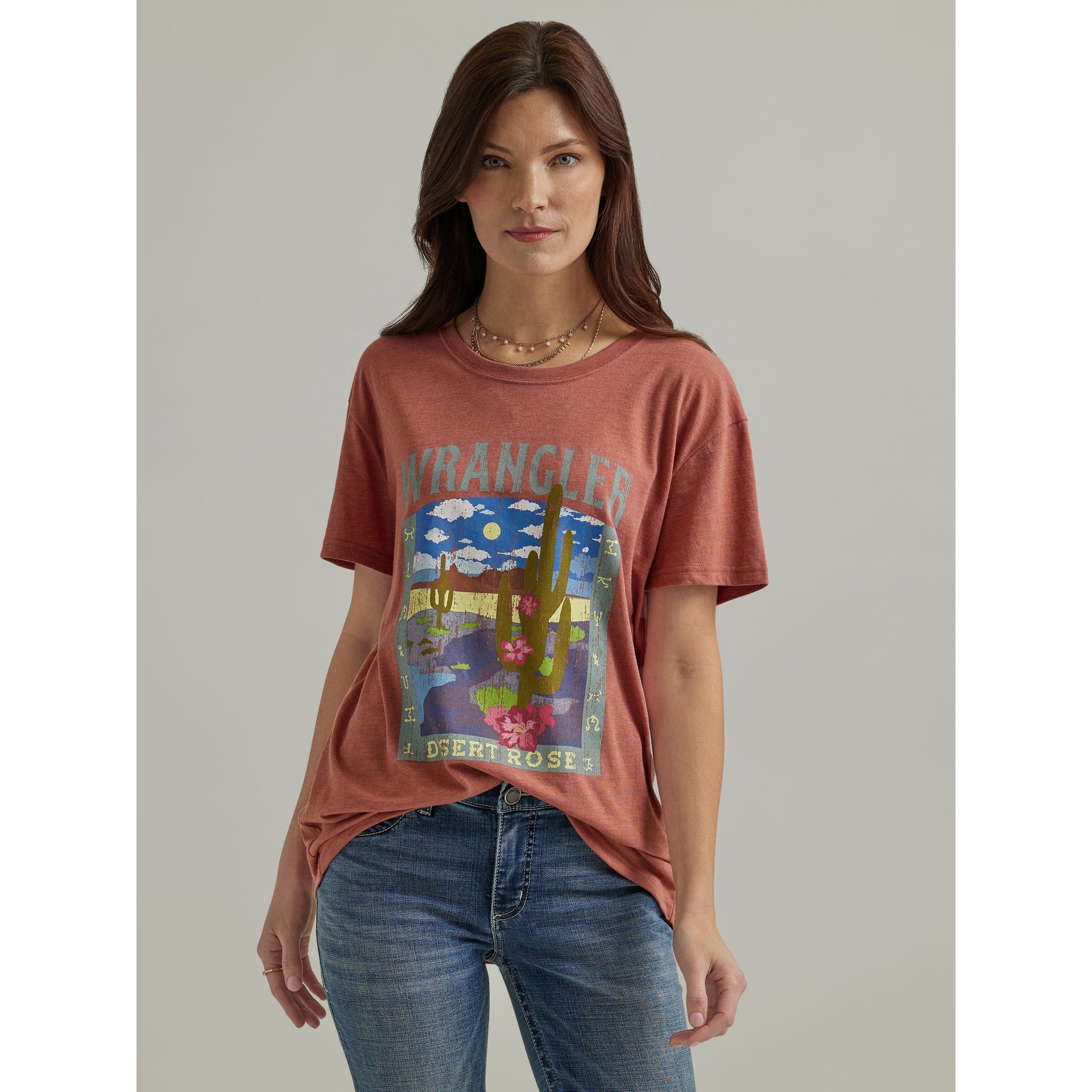 Wrangler Women's Desert Rose Short Sleeve Boyfriend Tee - Rust