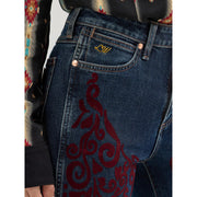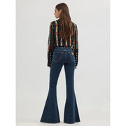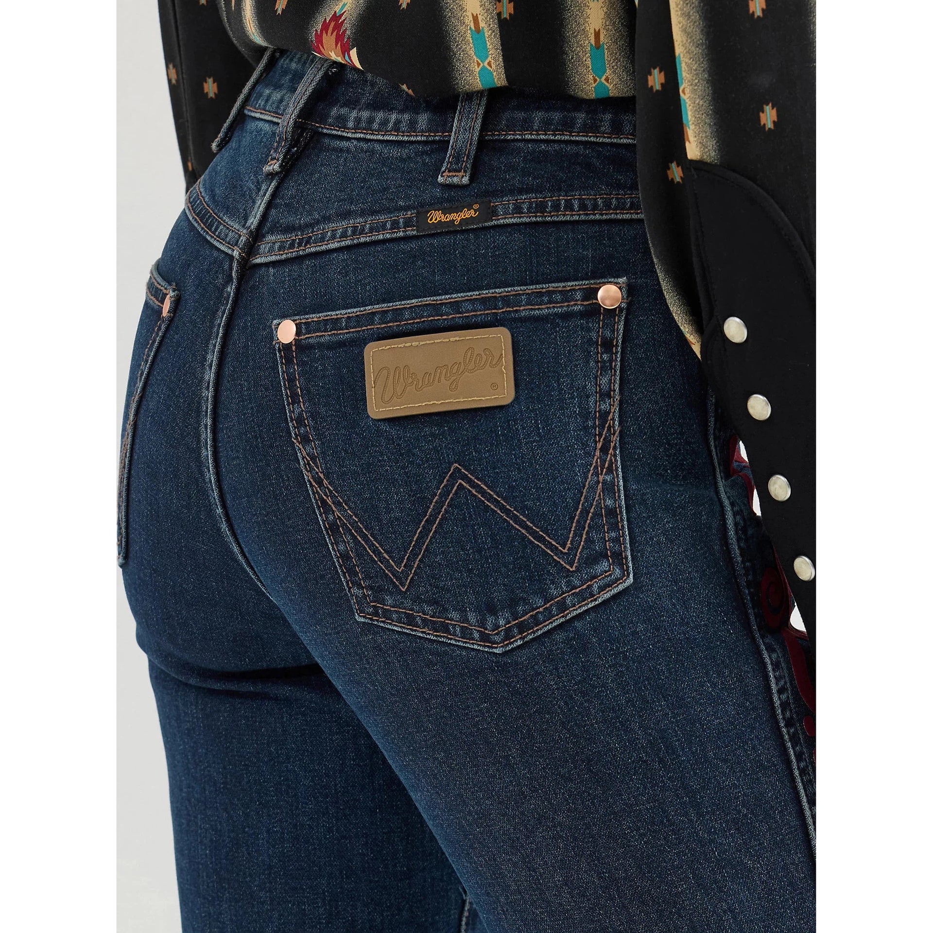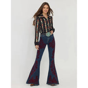 Wrangler Women's Lainey Wilson Vintage Flock Flare- Maroon Dark Wash