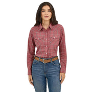 Wrangler Women's Long Sleeve Plaid Western Snap Shirt- Dusk Wine