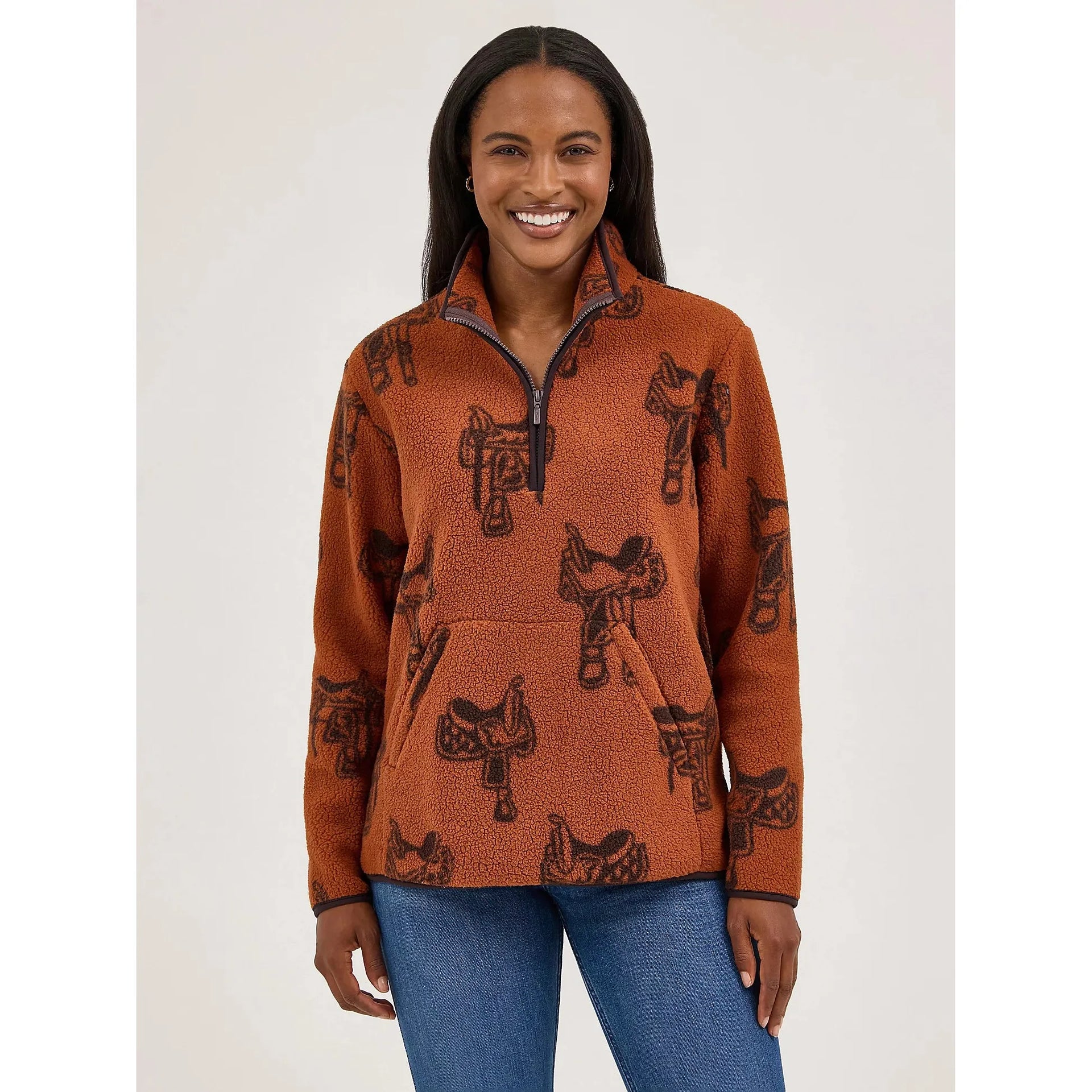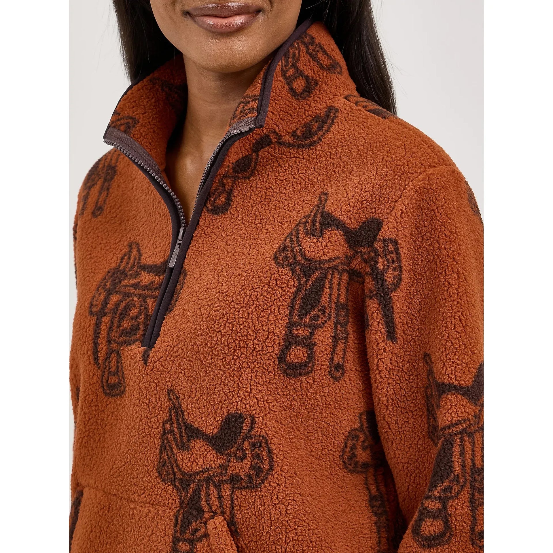 Wrangler Women's Retro Quarter Zip Long Sleeve Sherpa Pullover - Horse Brown