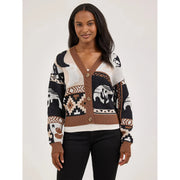 Wrangler Women's Western Cropped Cardigan Sweater - Brown