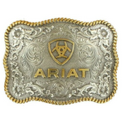 Ariat Buckle Rectangle with Gold Rope Edging Floral Filigree Center and Gold Shield Logo