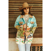 Lucky & Blessed Sunset Cactus Desert Aztec Scene Printed Long Sleeve Shacket