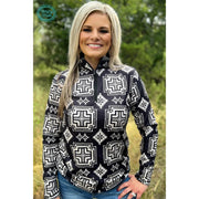 Sterling Kreek Women's Long Sleeve Down in the Hills Pullover- Black/White