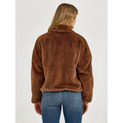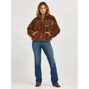 Wrangler Women's Fuzzy Zip Up Logo Jacket- Teddy Brown