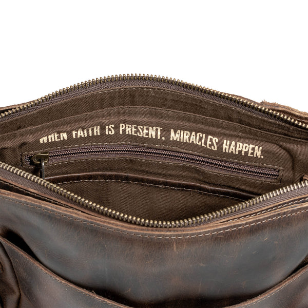 - Adjustable leather crossbody strap