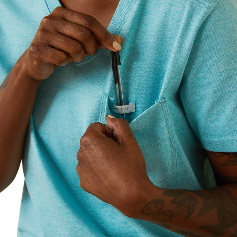 Ariat Womens Rebar Cotton Strong V-Neck Top - Bachelor Button Blue