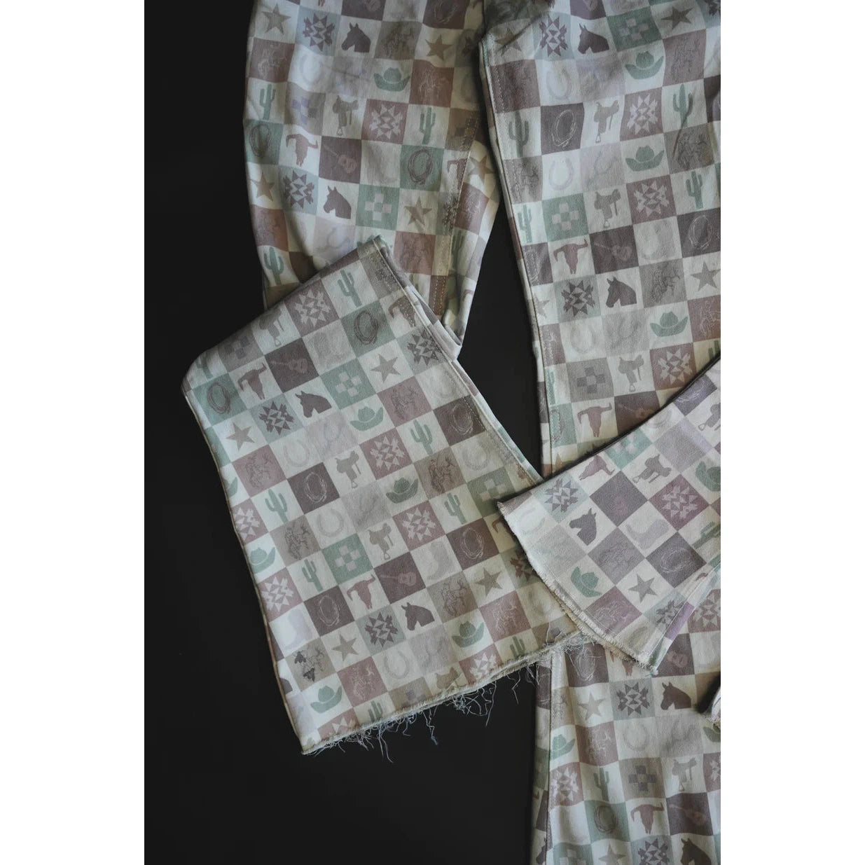 2 Fly Women's Western Flare Jeans - Checkered Multi