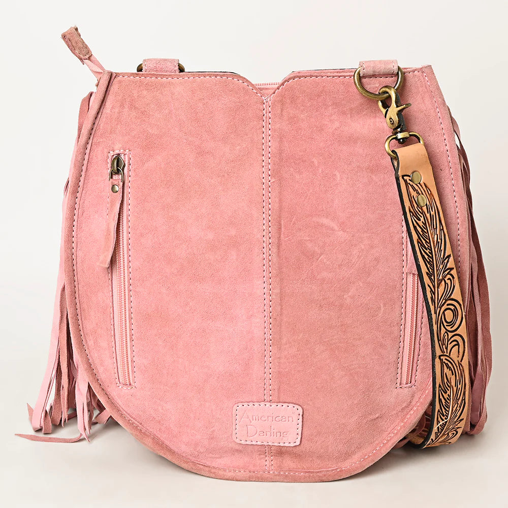American Darling Suede Hand-Tooled Purse w/Fringe - Light Pink