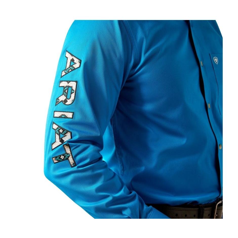 Ariat Men's Long Sleeve Team Logo Twill Fitted Shirt- Blue/Dark Blue