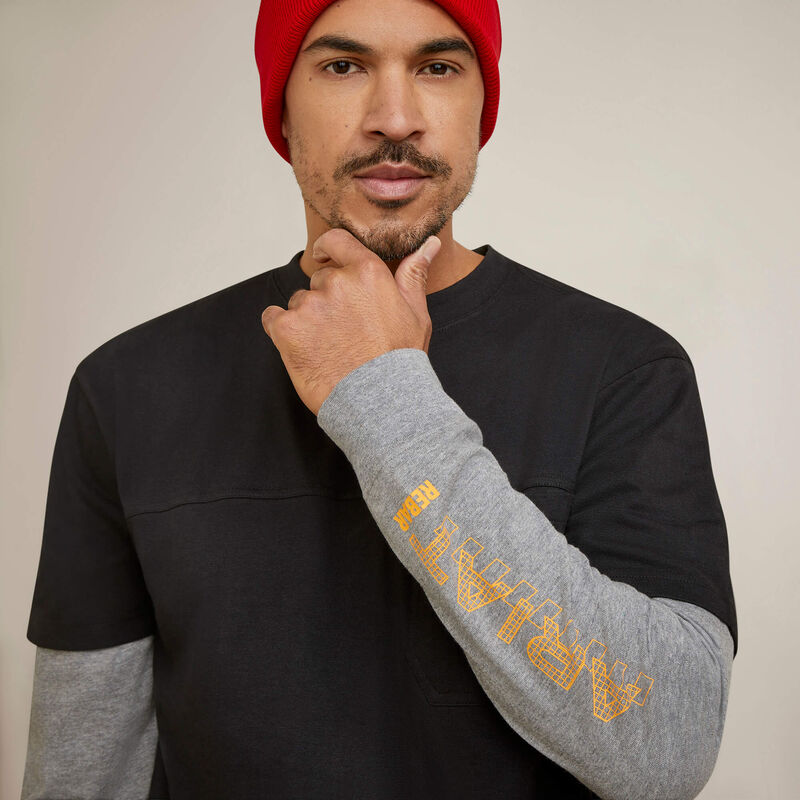 - A layered look without the bulk. We took our comfy-yet-durable Rebar™ CottonStrong™ T-shirt and added long sleeves beneath the shoulder