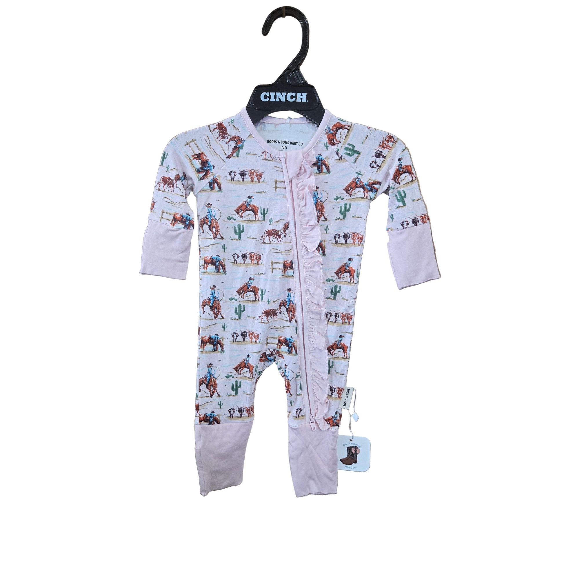 Each one features Boots and Bows Baby Co exclusive prints, smooth YKK double zippers for quick changes, & grippy bottoms on larger sizes (6-12M, 12-18M, & 18-24M) to help those little movers stay steady