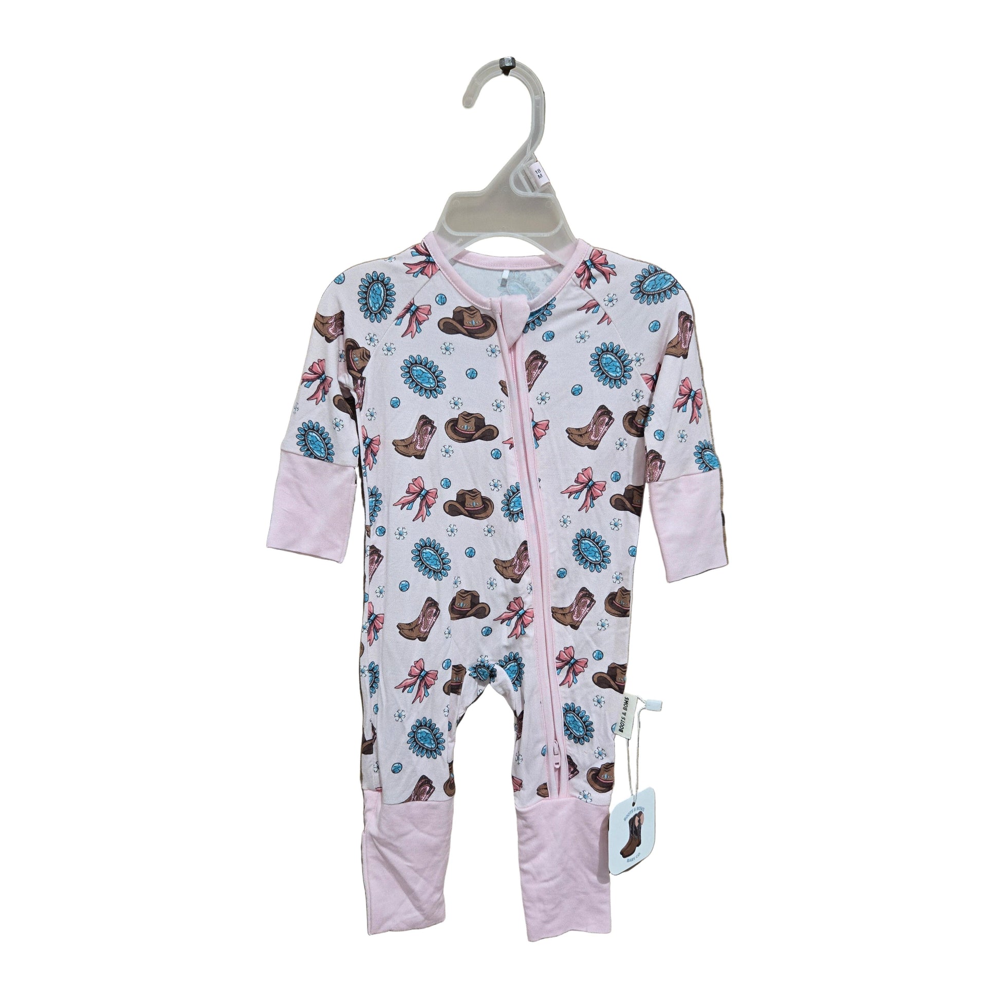 Boots & Bows Turquoise Cowgirl Infant Sleepers