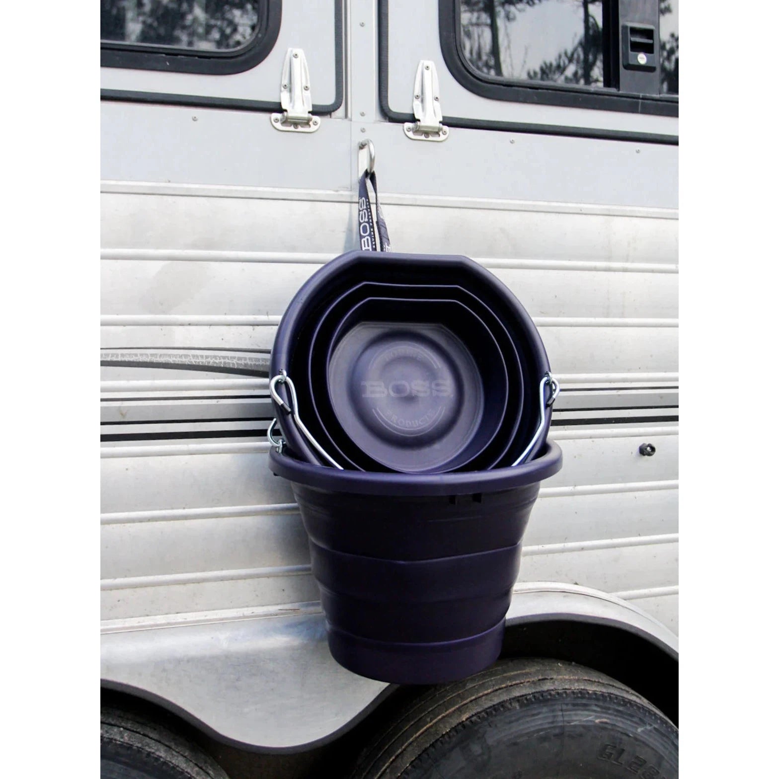 Our BOSS™ Bucket lays flat at just 3 inches tall, making it the most compact equine bucket ever made. Great for travel and storage, you can stack 6 of our buckets to equal the height of one regular bucket.