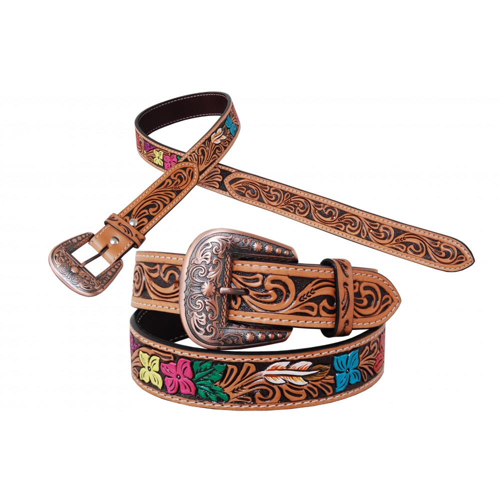 Flower Tooling Black Colour Background Paint Multi Colour w/Copper Buckler