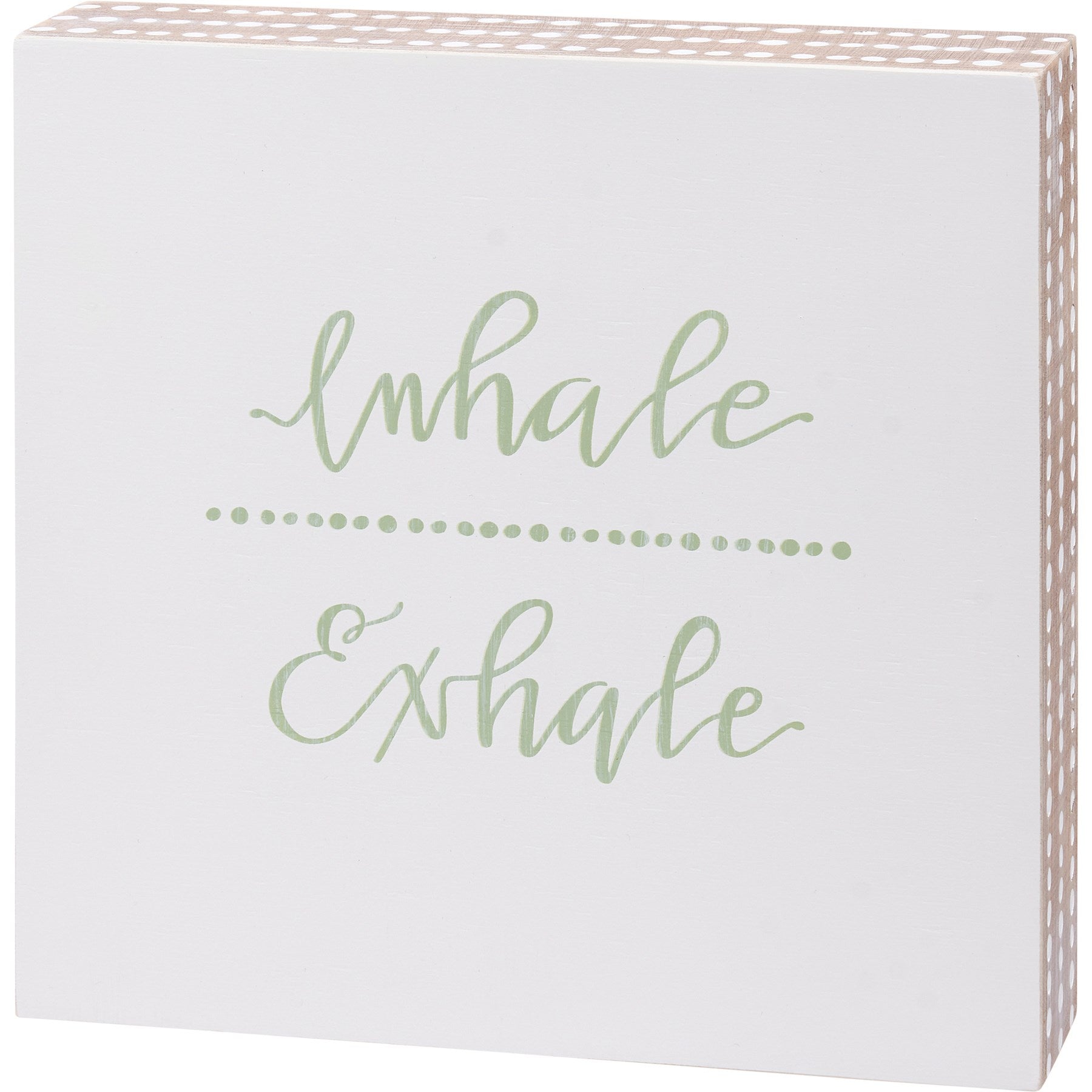- Inspire calmness with our box sign displaying hand lettered "Inhale Exhale" sentiment on warm white background