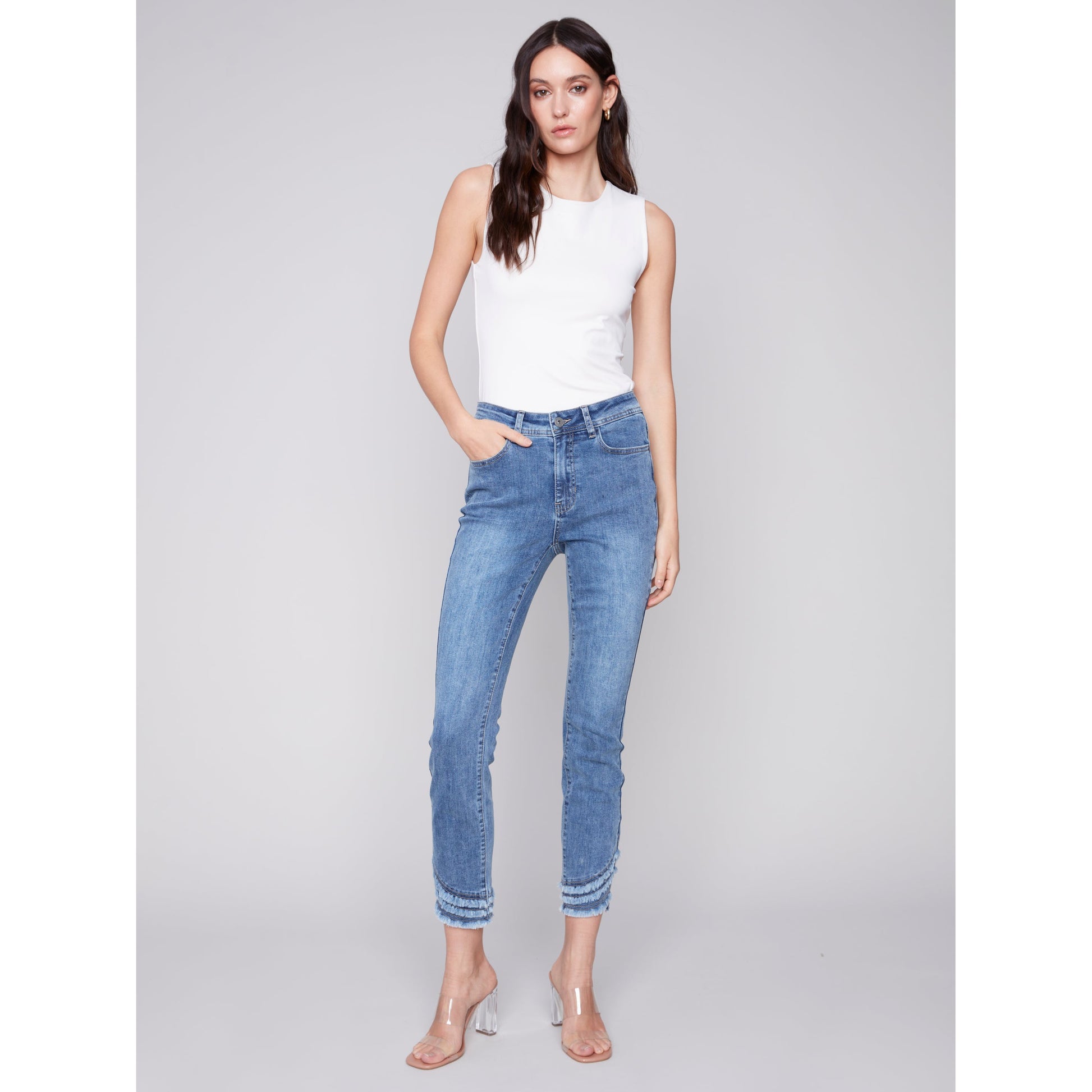 Charlie B Women's Ripped Hem Jeans - Medium Blue